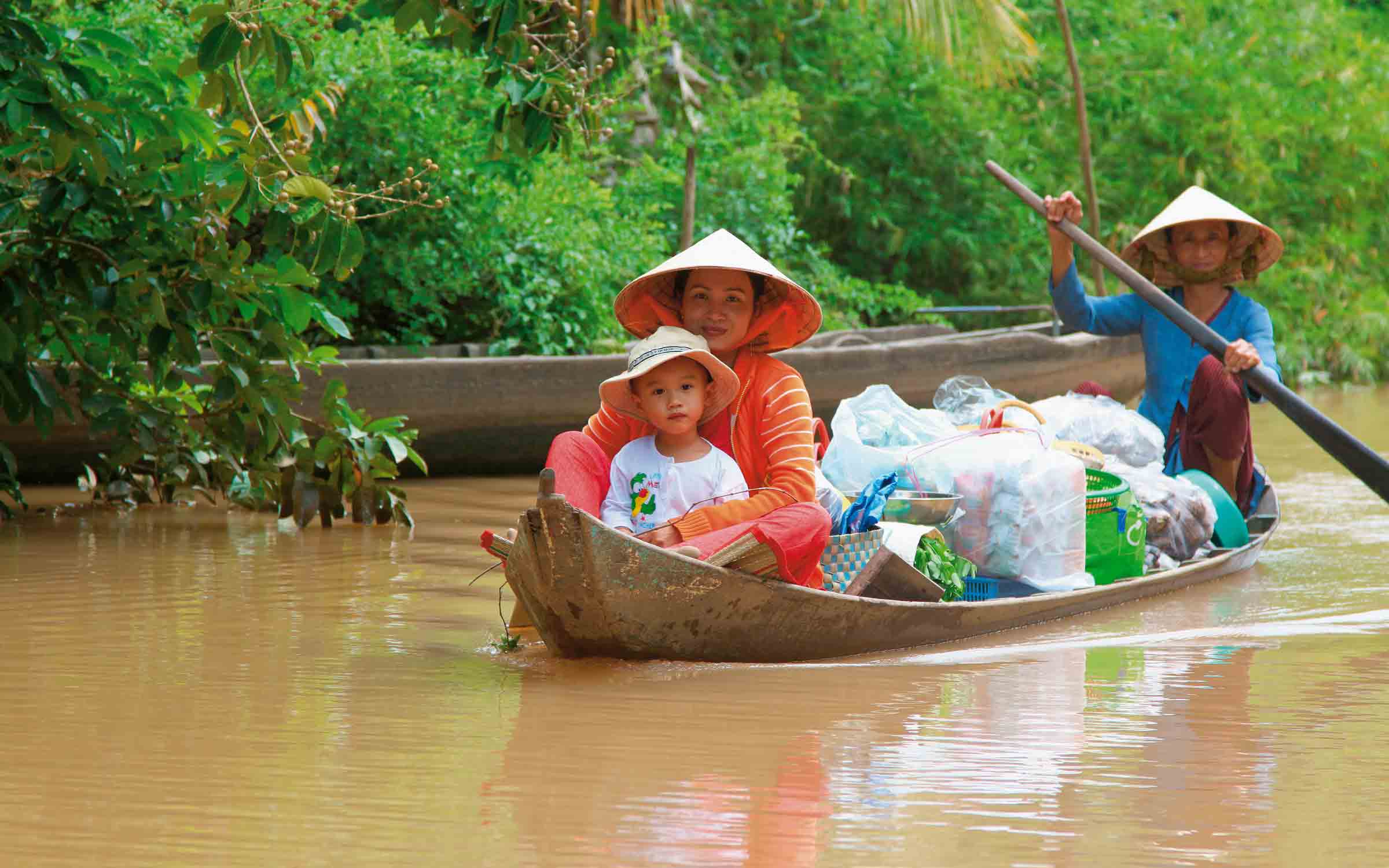 Mit dem Boot tuckern Sie zu einem Urwald, der früher dem Vietkong Unterschlupf bot. Sie tuckern weiter zu einem verträumten Kloster, besuchen eine Schule, erleben jede Art von Handwerk. Es scheint, dass jede Familie ein eigenes Geschäft betreibt.